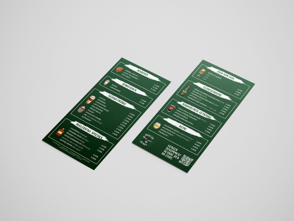 Der Bullenstall kam mit dem Wunsch nach einem einheitlichen und professionellen Auftritt am Point of Sale auf uns zu. Ziel war es, das bestehende Erscheinungsbild klar zu strukturieren und im direkten Gästekontakt konsequent umzusetzen.